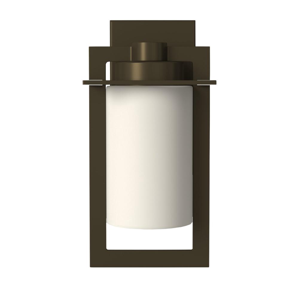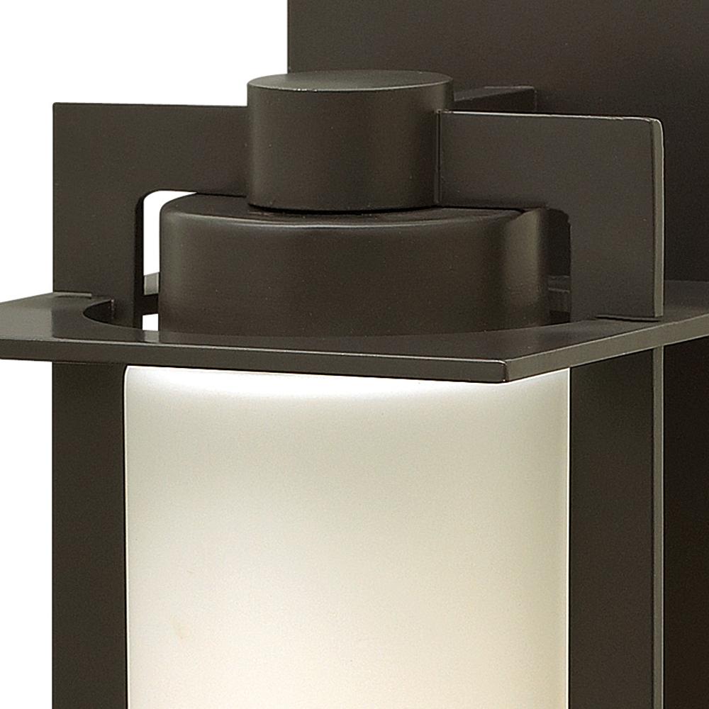 The sleek lines of Colfax feature intersecting planes of solid aluminum and a chic cylinder of etched opal glass to create a sophisticated geometric form. The die-cast aluminum construction in a Bronze finish brings an Arts & Crafts flair to the transitional design.
