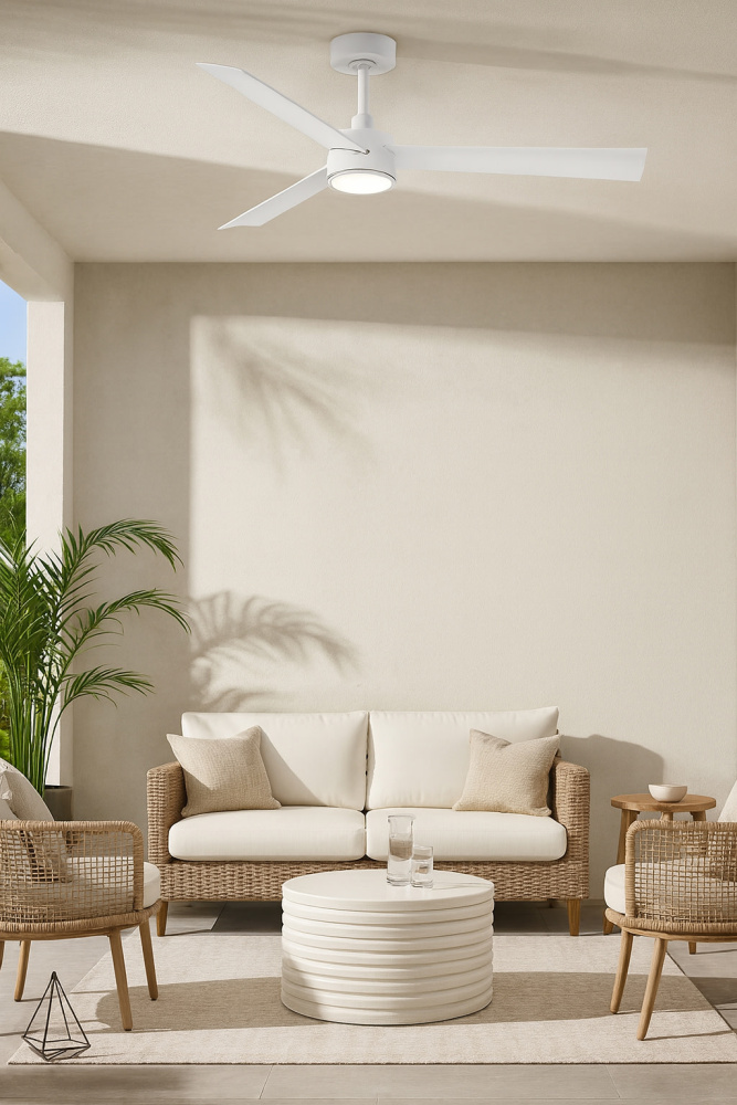 Speck’s sleek design features three wood blades in classic finishes to complement both modern and traditional settings. Its versatile damp-rated construction can enhance interior or covered outdoor living spaces. Equipped with a 6-speed DC motor that is WiFi enabled and ready to connect right out of the box. Operated by the HIRO control or WiFi compatible with the Hinkley App.