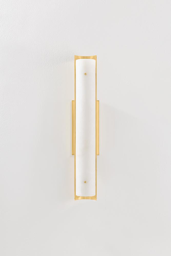 The upscale minimal design language of Lucio makes for an easy crossover from living to bath and powder room spaces. A striking inner alabaster bar is framed by Aged Brass metalwork, creating a harmony of fine materials. Delicate pins secure the stone in place, adding a decorative detail to the sleek silhouette. Lucio is available in two sizes. Due to the one-of-a-kind nature of the medium, exact colors and patterns may vary slightly from the image shown.