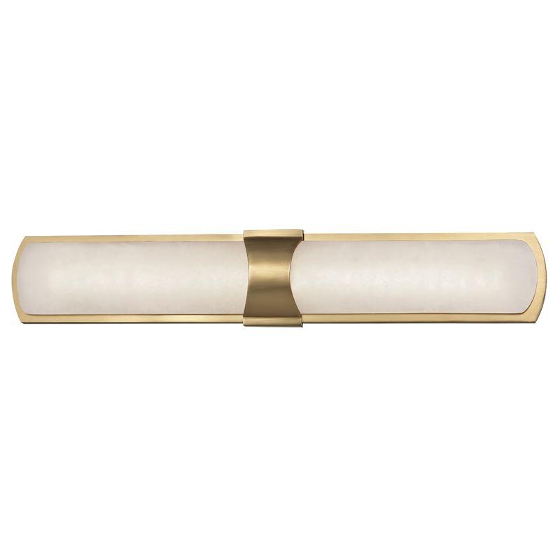 Spanish alabaster garnered a reputation as a luxurious material for the duress in its extraction and its use in aristocratic and ecclesiastical spaces. Here we use the wonderfully light-diffusive material to conceal a powerful LED board. Paired with aged brass, it makes an exquisite bath and vanity sconce.