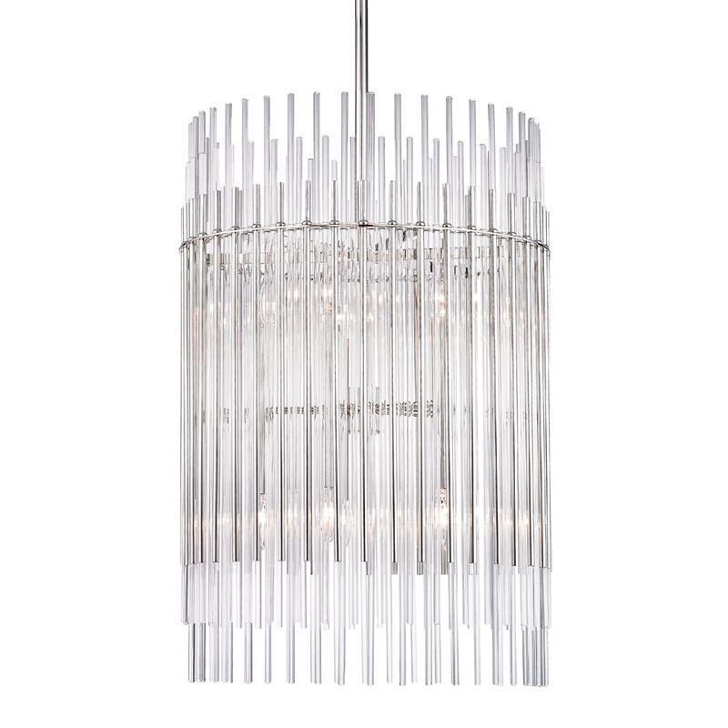 From the side or from underneath, Wallis presents an interesting perspective. By layering glass and metal rods at staggered but even lengths in a classic drum shape, Wallis manages to feel both contemporary and familiar. At the same time, it directs light vertically and diffuses it horizontally.