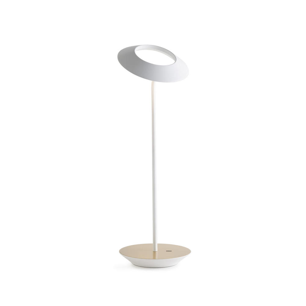 Royyo Desk Lamp, Matte White body, Brushed Brass base plate