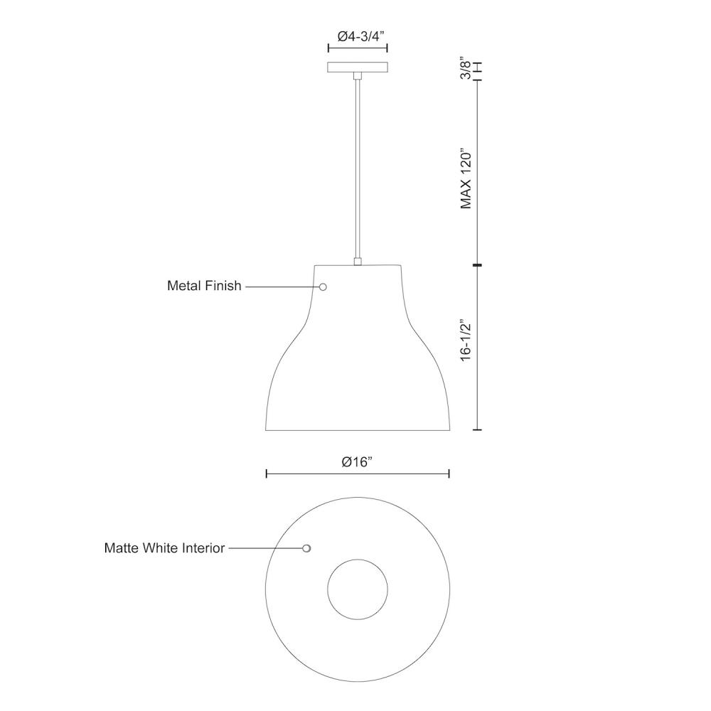 Single-lamp pendant with tapered aluminum shade showcasing powder-coated finishes. Exterior shade colors are either black, gray or white, with matte white interior. Suspended by cloth cable . Available in three sizes.