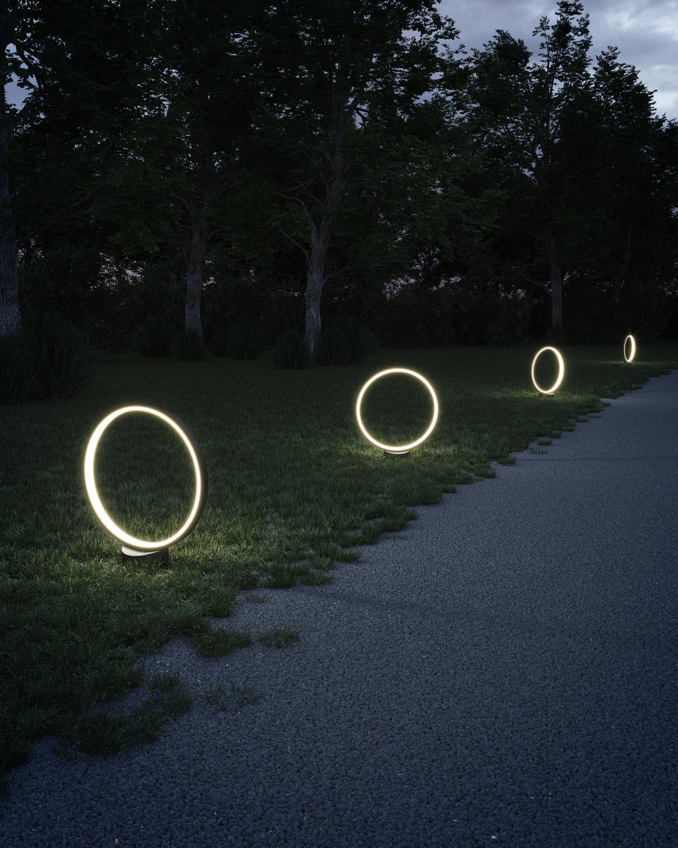 Circular frames of illumination hang or float on the ground in outdoor spaces like never before with this unique collection. Hang a few Parc Pendants or line a walkway with Parc fixtures outdoor for an instant statement look.