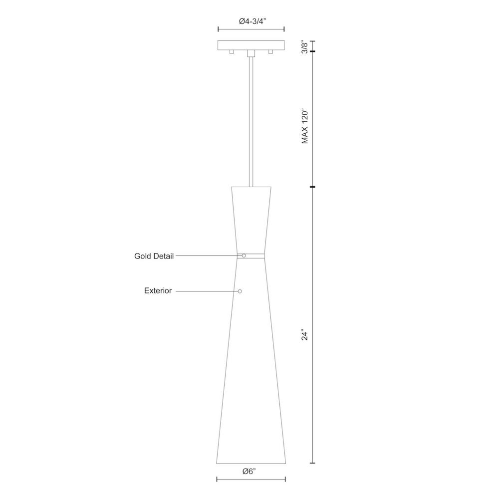 Vanderbilt 6-in White With Gold Detail 1 Light Pendant