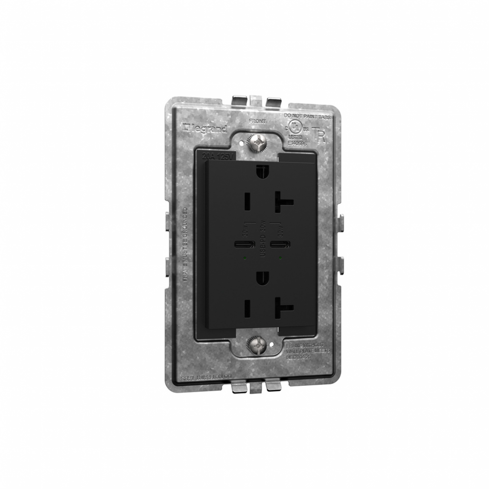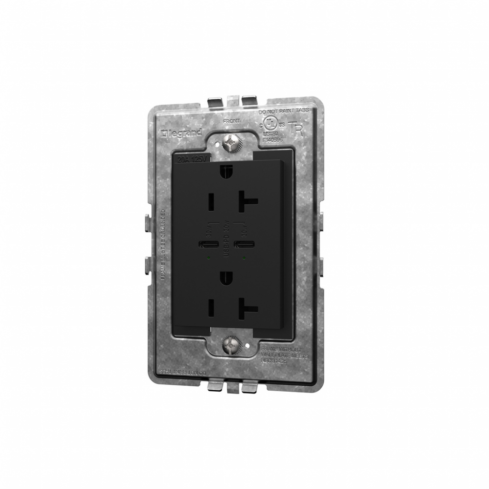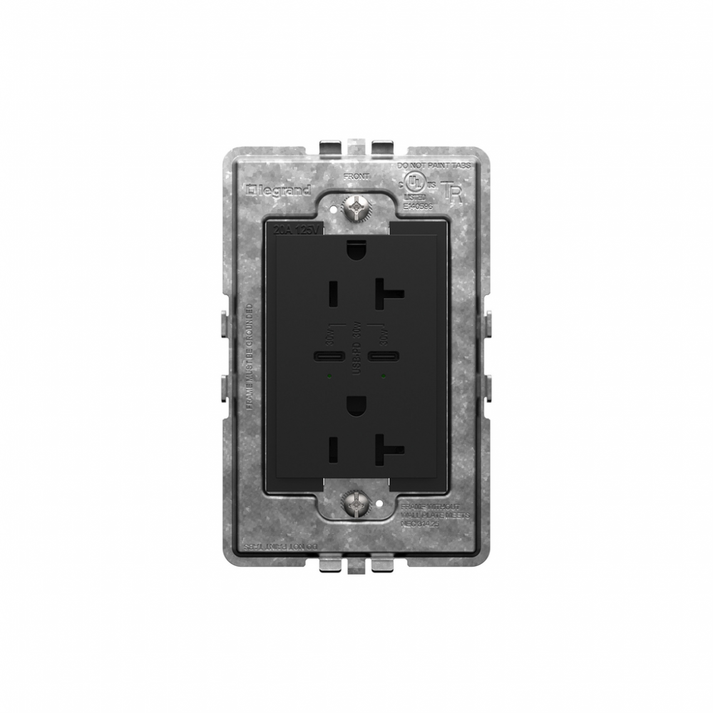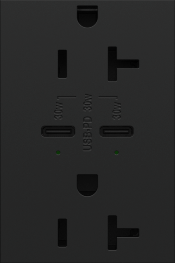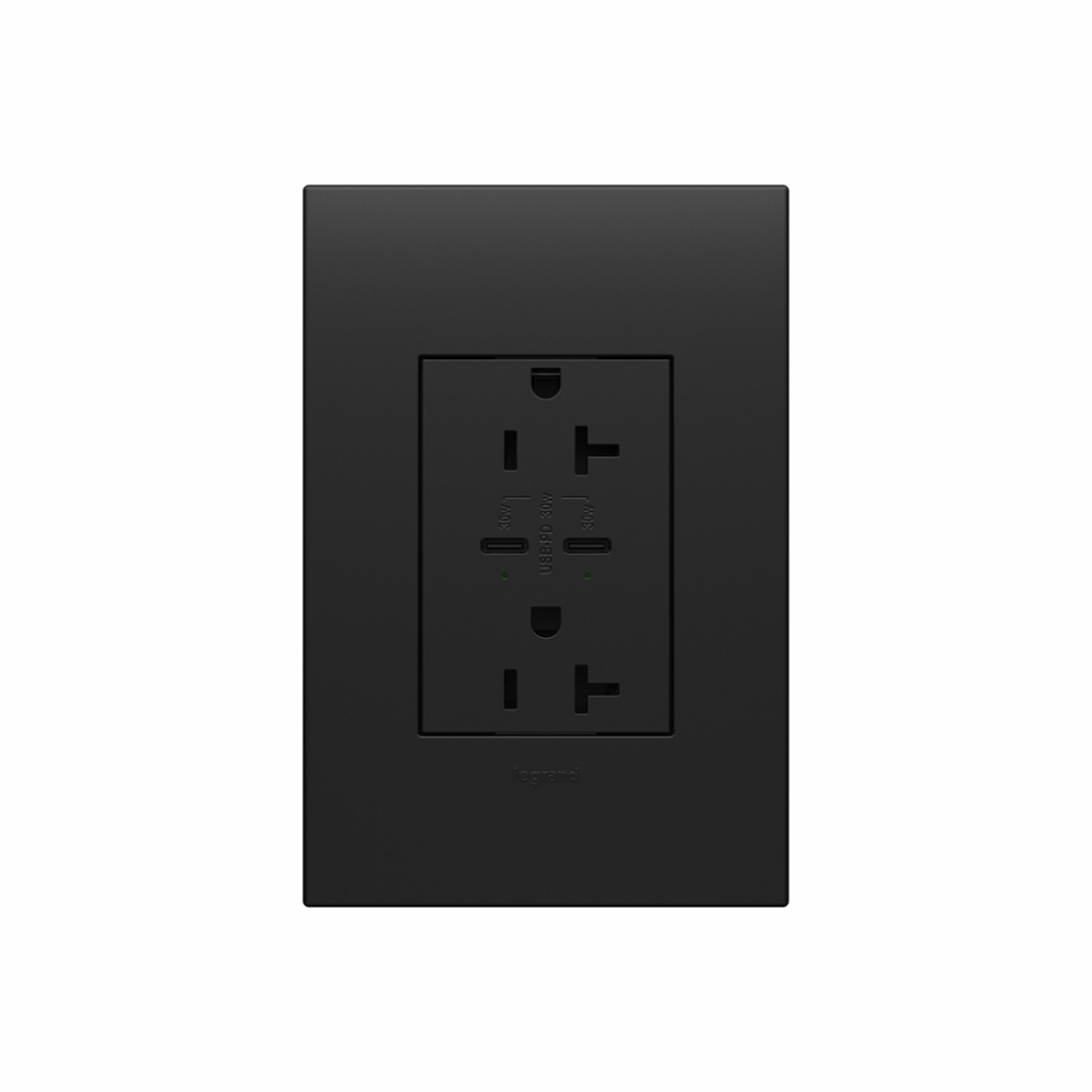 adorne? 20A Tamper-Resistant Ultra-Fast Plus Power Delivery USB Type-C/C Outlet, Plus-Size, Graphite