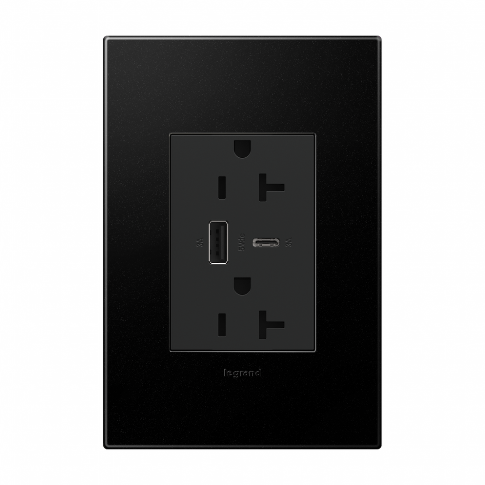Charge phones, tablets and more up to 40% faster, with Ultra-Fast USB Outlets from the adorne? Collection. Made to deliver a leading 6 amps of power, it features two built-in USB connections, including one to fit USB Type-C devices, and provides a fast, future-proof solution for convenient in-wall charging without an adapter. Easily replacing traditional outlets in as little as ten minutes, this Ultra-Fast USB Outlet transforms your space with modern functionality and the unique, contemporary aesthetic of adorne. Made exclusively for use with screwless Wall Plates from the adorne? Collection, sold separately.