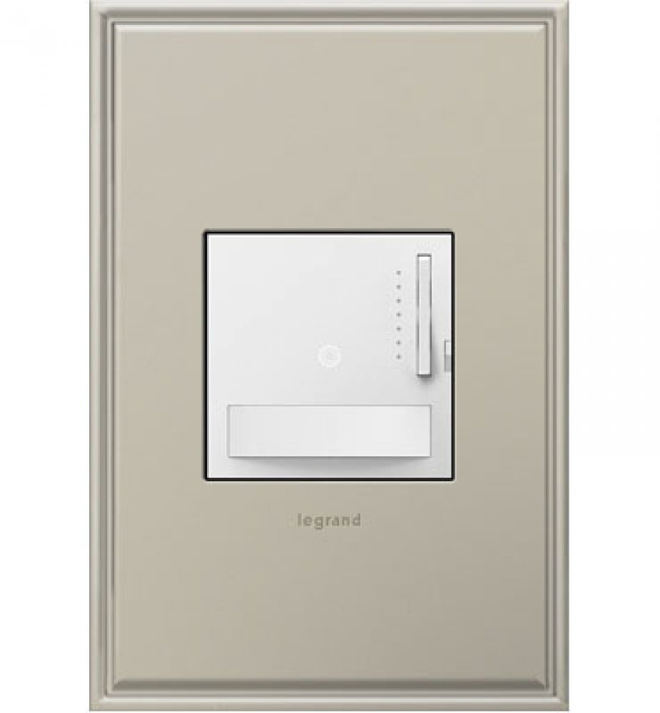 Perfect for garages and pantries, this dimmer switch allows for both manual and automatic motion-activated control. Using motion-sensing technology, it automatically turns lights on when you enter a room, and off when you leave. With manual control, you can even adjust to your preferred light level with the subtle built-in slider. Use on its own to control an incandescent or halogen light or fixture from a single location, or pair with a second Motion Sensor Dimmer to use as a remote dimmer switch for control of a single light source from two locations. This Motion Sensor Dimmer is meant for single fixtures and small lighting groups that do not exceed 700W.This dimmer* features enduring Microban? antimicrobial technology that works to reduce the growth of bacteria, around the clock, for the lifespan of the product.* Existing inventory of switches, dimmers and plastic wall plates from the adorne? Collection at some partner locations may not yet include Microban? protection. To confirm that a specific Legrand product is protected with Microban?, check that the exterior of the product packaging includes a green dot or a ""Protected with Microban"" label. Made exclusively for use with screwless Wall Plates from the adorne? Collection, sold separately.No antimicrobial efficacy claims are being made or are valid with respect to products sold in Canada.