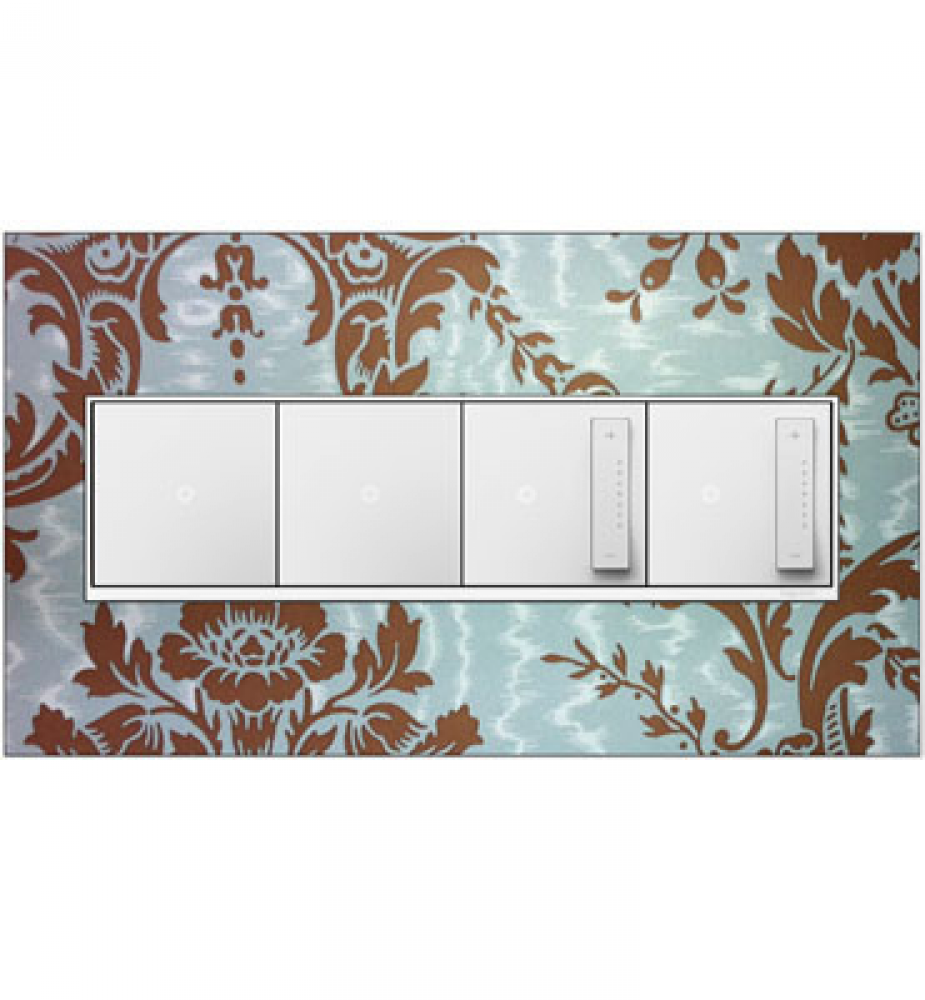 For a truly unique option, personalize this Wall Plate with wallpaper, paint, or even fabric. A 4-Gang Wall Plate, it is perfectly sized to fit any combination of up to four standard-sized adorne devices, or up to eight half-sized adorne designer switches and outlets.