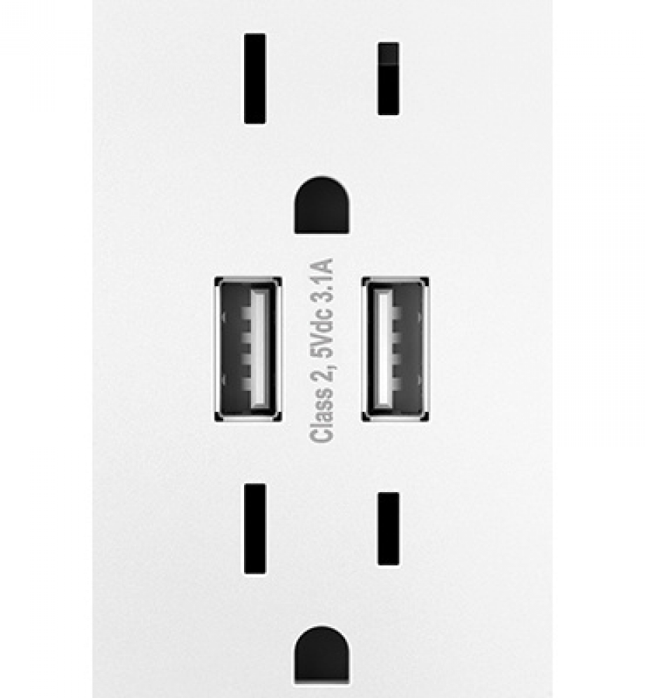 adorne Dual-USB Outlet with Gloss White Wall Plate, White