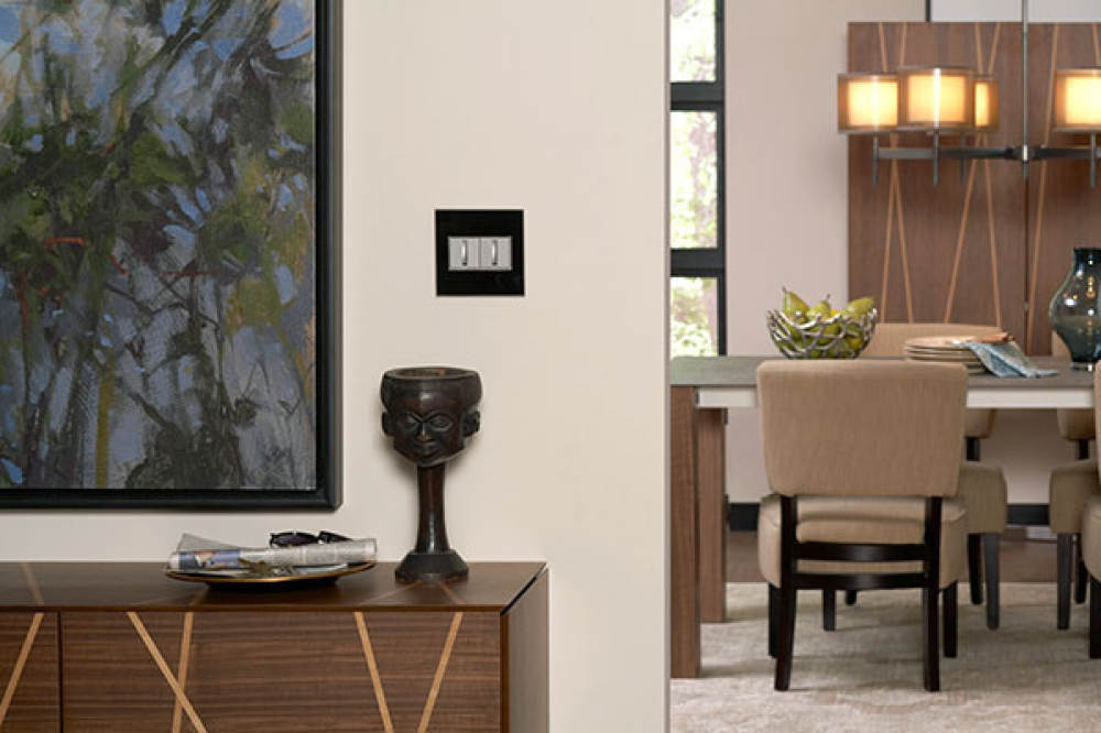 Modern and dramatic, add a luxurious feel to any room with this dark reflective finish. A 2-Gang Wall Plate, it is perfectly sized to fit any combination of up to two standard-sized adorne devices, or up to four half-sized adorne designer switches and outlets.