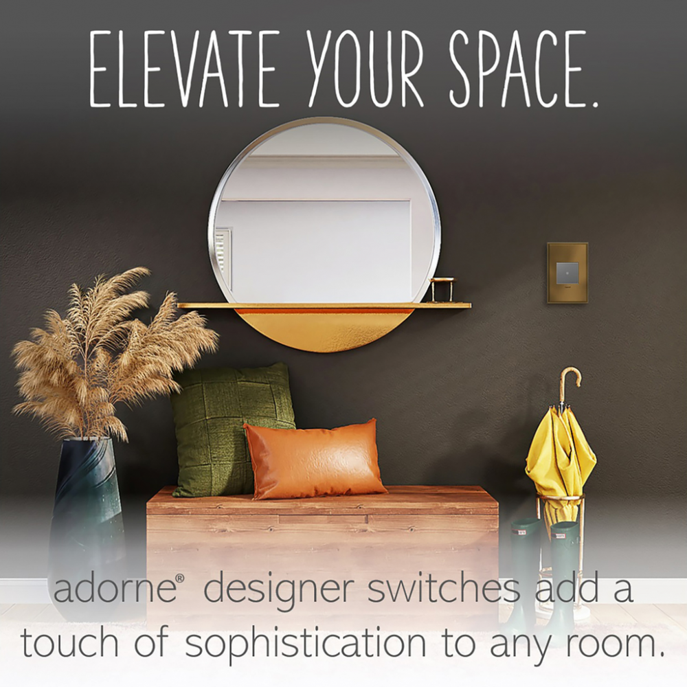 Turn lights on/off with just a soft tap of a finger, thanks to the inventive micro-movement technology of this beautifully modern designer light switch.This switch* features enduring Microban? antimicrobial technology that works to reduce the growth of bacteria, around the clock, for the lifespan of the product.* Existing inventory of switches, dimmers and plastic wall plates from the adorne? Collection at some partner locations may not yet include Microban? protection. To confirm that a specific Legrand product is protected with Microban?, check that the exterior of the product packaging includes a green dot or a ""Protected with Microban"" label.Made exclusively for use with screwless Wall Plates from the adorne? Collection, sold separately.No antimicrobial efficacy claims are being made or are valid with respect to products sold in Canada.
