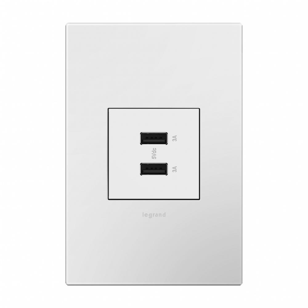 Charge phones, tablets and more up to 40% faster, with Ultra-Fast USB Outlets from the adorne? Collection. Delivering a leading 6 amps of power to its two USB connections for faster in-wall charging, without an adapter. Made exclusively for use with screwless Wall Plates from the adorne? Collection, sold separately.