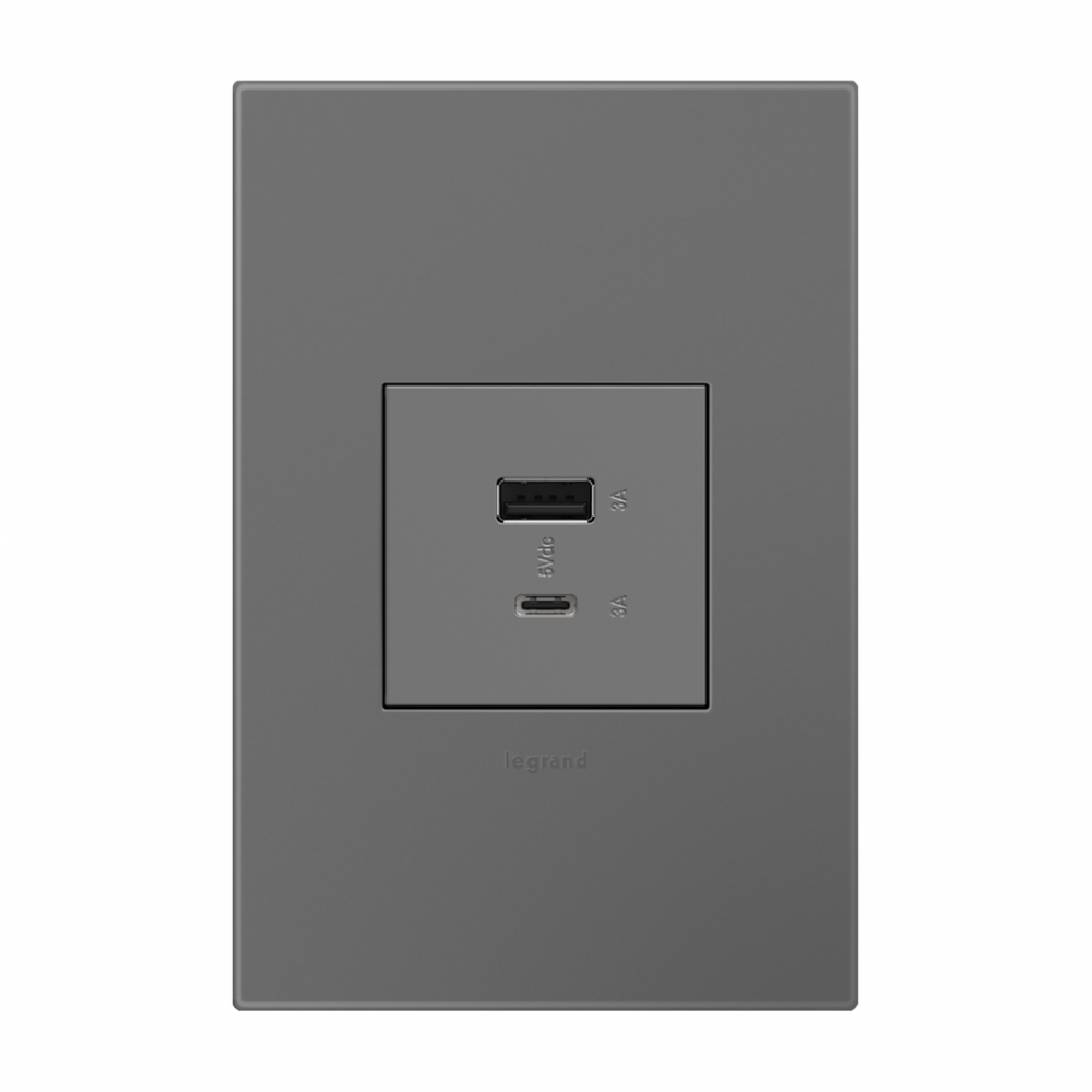 adorne Ultra-Fast USB Type-A/C Outlet Module, Magnesium