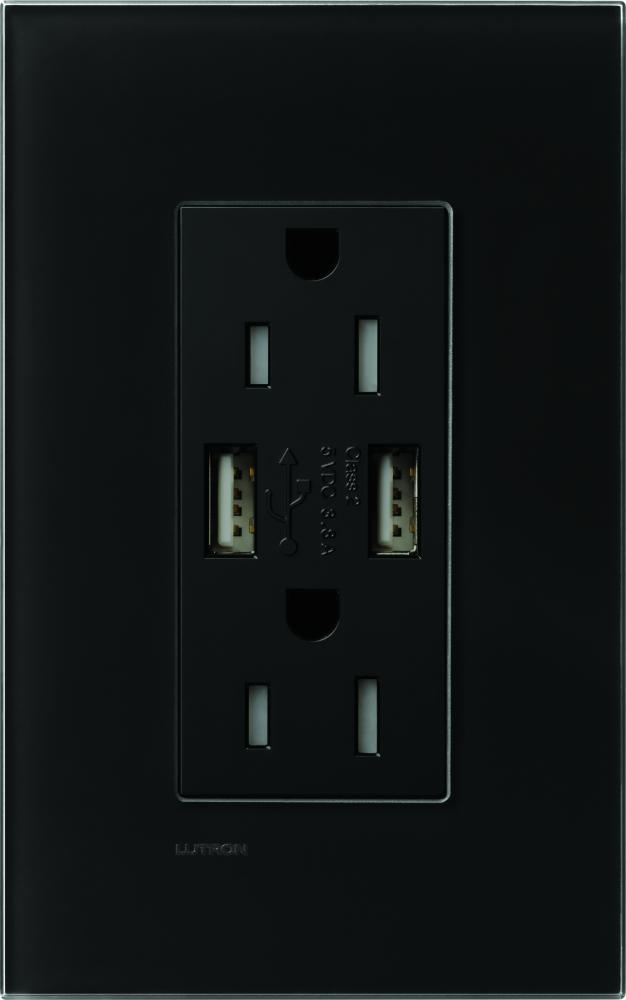 Architectural style, tamper-resistant USB receptacle, 125V, 15A with faceplate in clear black glass