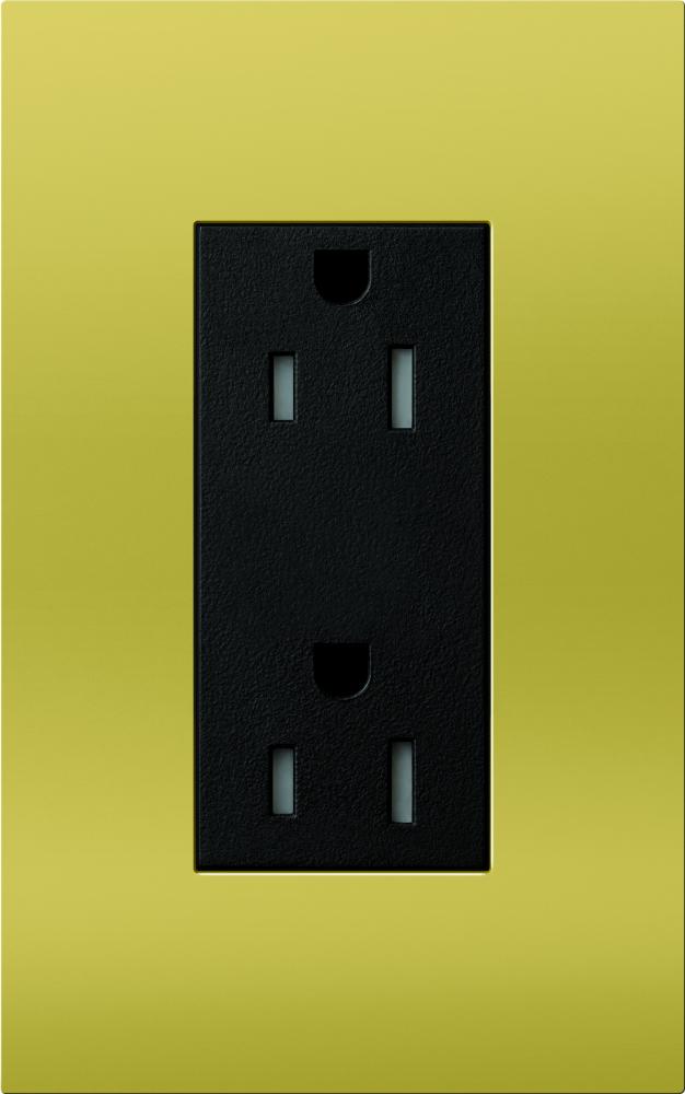 Duplex 15 A receptacle, tamper resistant, 125V/15A with faceplate in bright brass