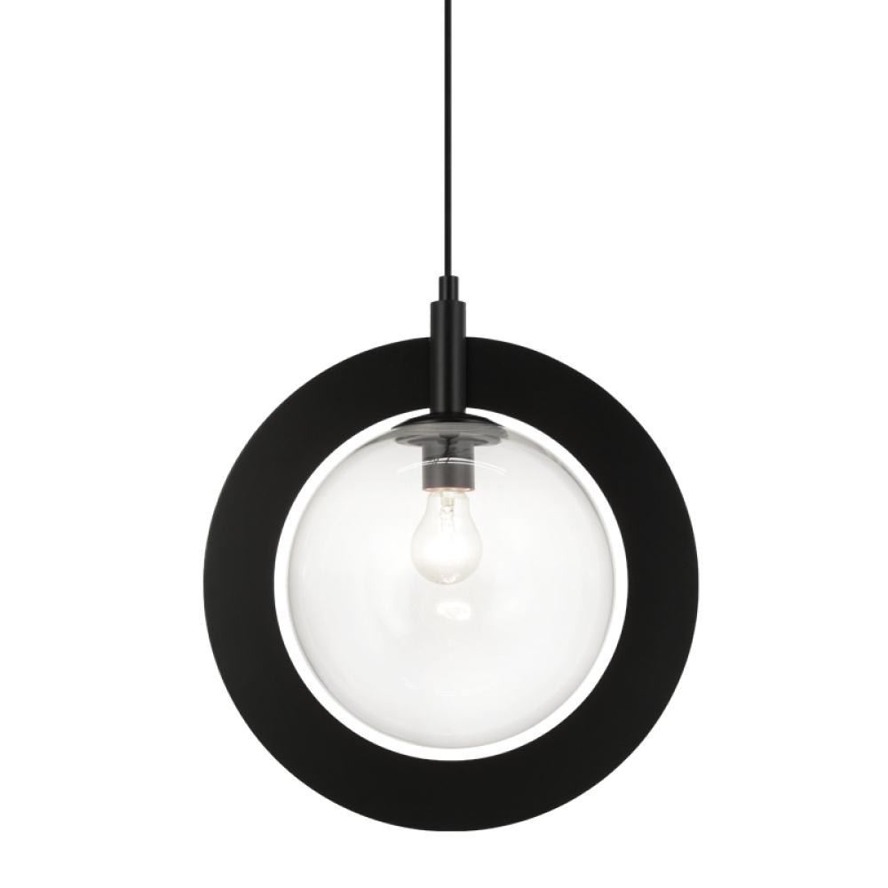 A stunning yet simple pendant designed with circular elements. Astro features Clear or Opal Glass, surrounded by a bold metal ring. Available in 2 finishes: Aged Gold Brass and Black.