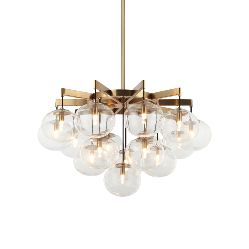 16 LT 32" DIAM "BULBUS" AGED GOLD/CEILING CLEAR GLASS CHANDELIER LED G9 LED 10W