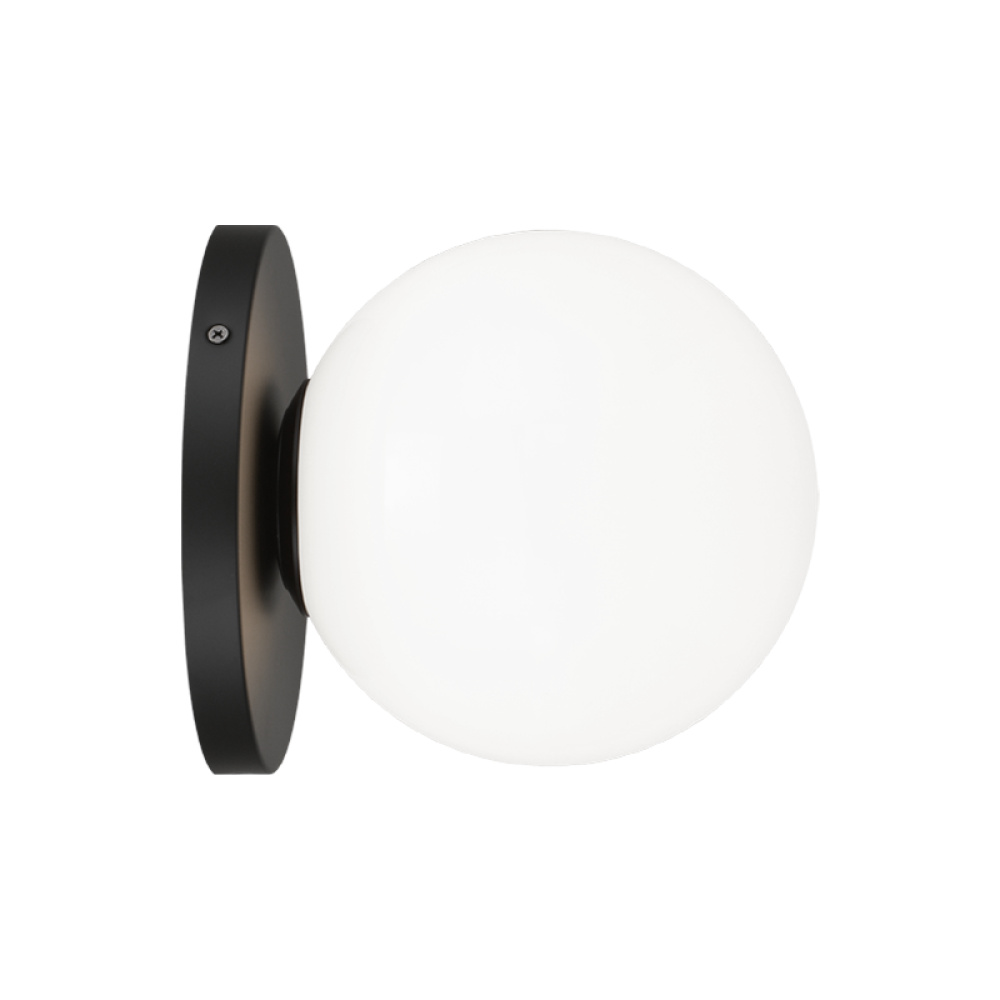 1LT 7.9"W "COSMO" WALL IRON+ALUMINUM-BK-OPAL GLASS