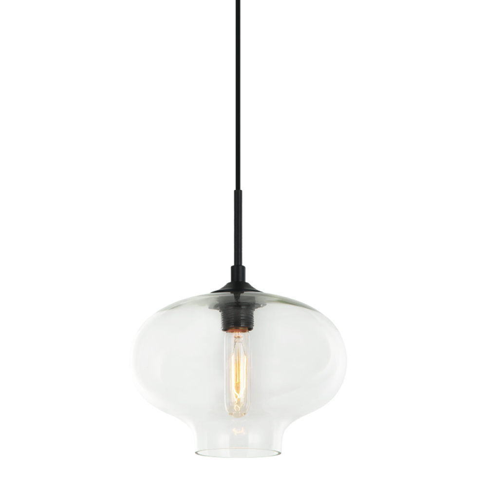 Clean, simple hand-blown glass will redefine any space. Two glass color options are available in all shapes. Single black canopy with black cord included.