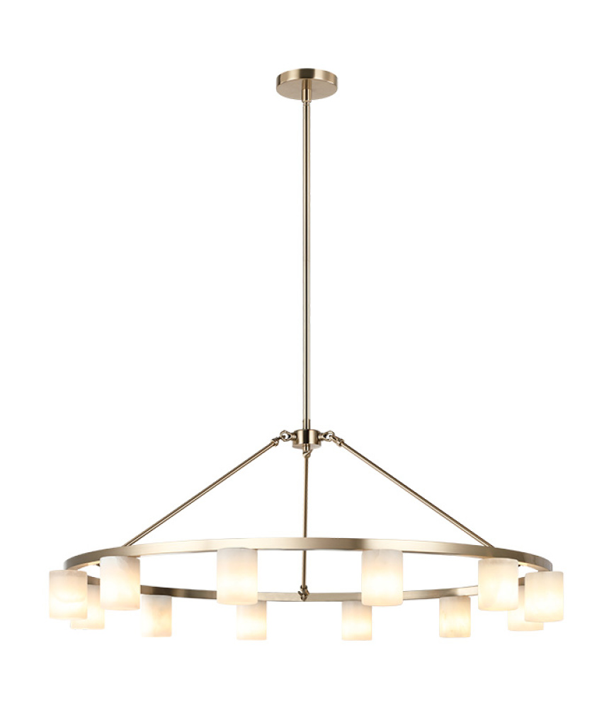 Lindy Sophisticated simplicity meets elevated warmth. Each alabaster shade—designed to face either upward or downward—casts a soft, ambient radiance that adds depth and comfort to any space. Both finishes introduce a subtle touch of luxury, allowing the fixture to stand out as a statement piece while remaining a harmonious complement to contemporary or transitional interiors. LIGHTBULBS NOT INCLUDED