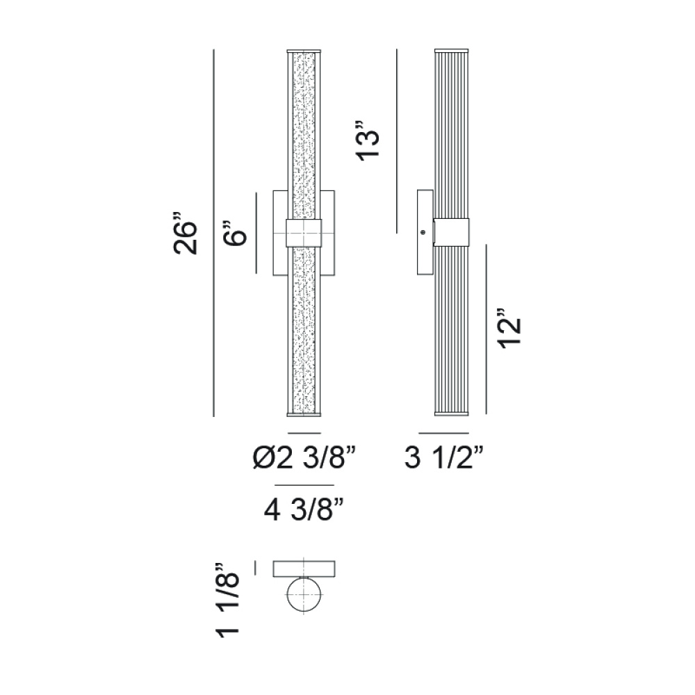 Macie The Macie wall sconce is an integrated LED covered with a white tube and then finished with ribbed glass resulting in a clean sophisticated style. The contrast between the smooth white tube and the textured ribbed glass creates a tasteful elegant energy.