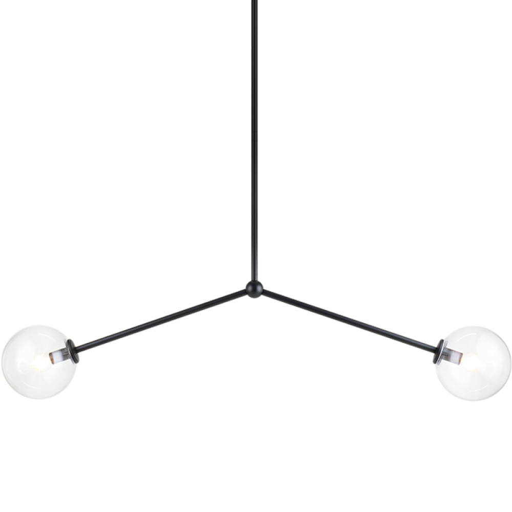 Novo is modern yet classic – available in the form of chandelier, wall sconce, and flush mount. The rods and base are either Aged Gold Brass or Black finish paired with a contrasting Opal or Clear round glass and diamond shaped glass. The style is very versatile and will add beauty to multiple rooms.