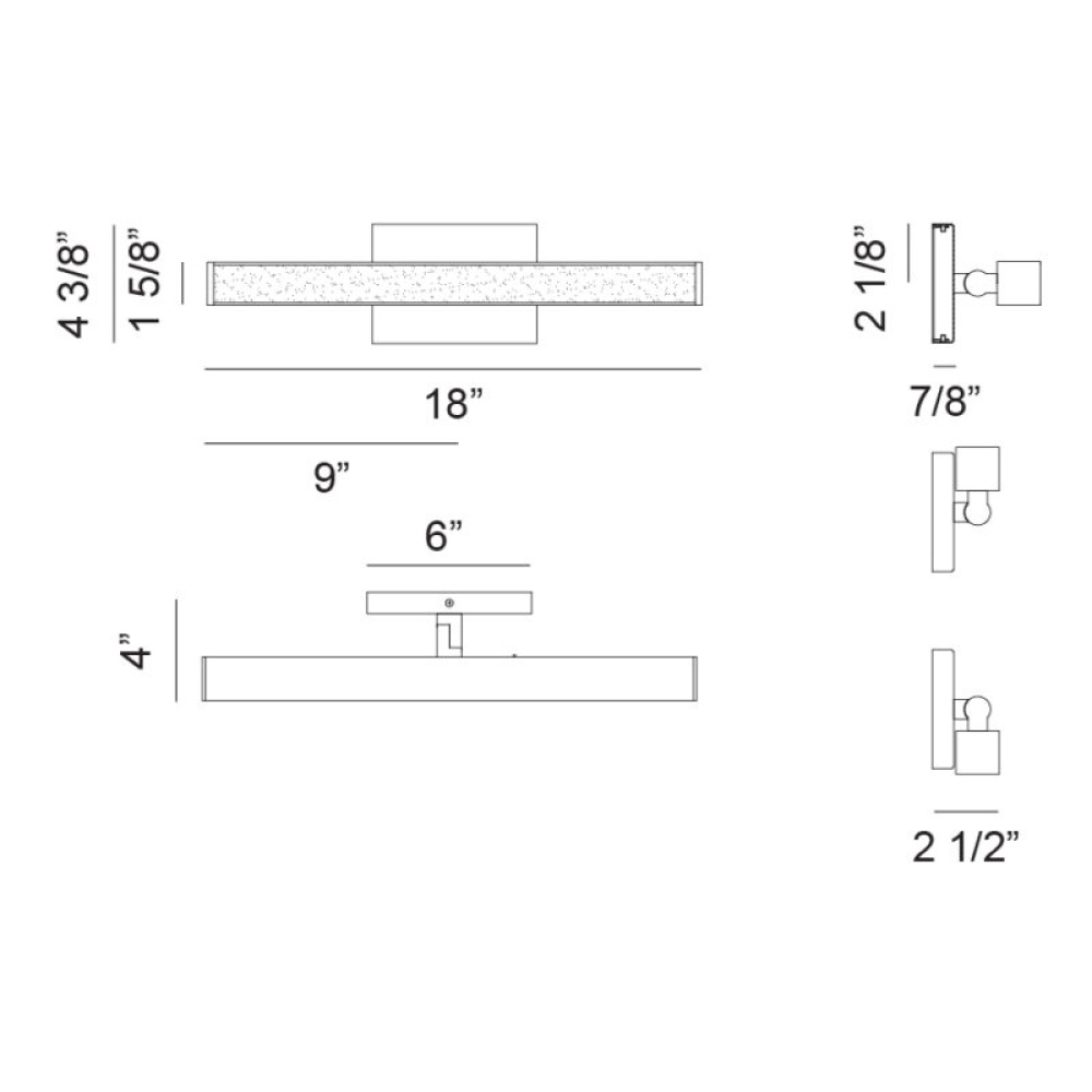 1 LT 18"W "PARALLEL" MATTE BLACK LED WALL SCONCE