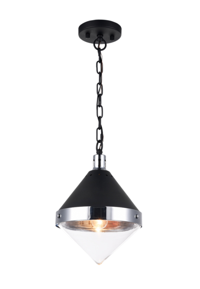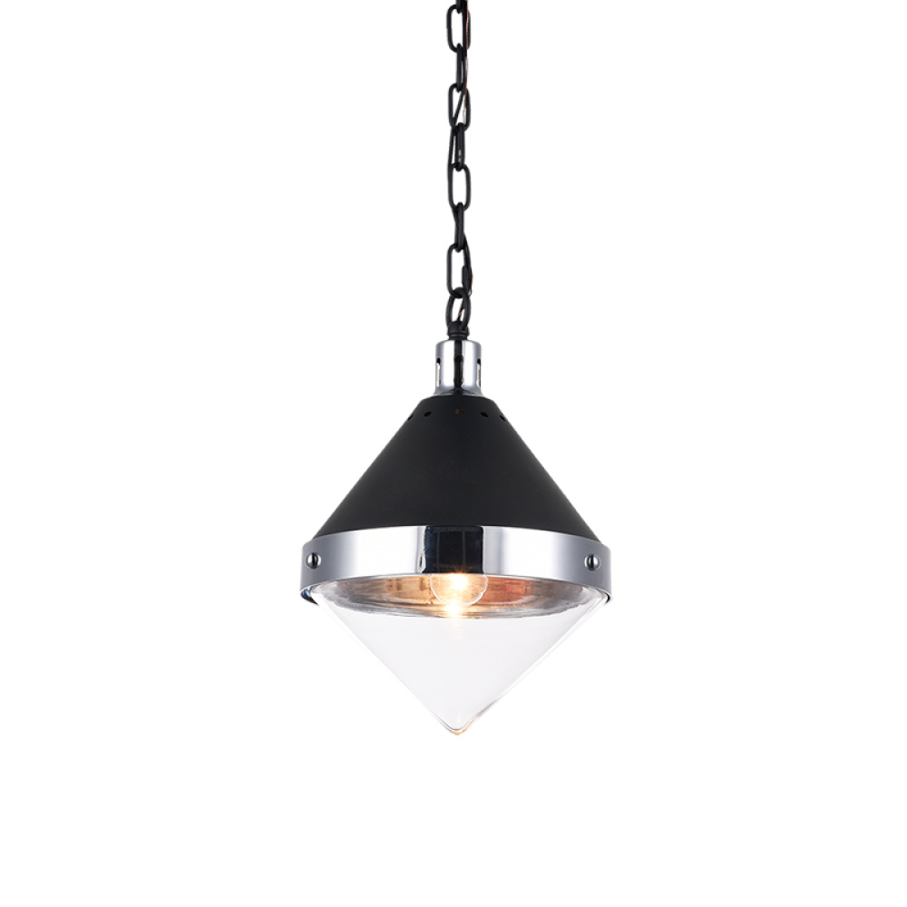 A fusion design that combines medieval style with modern elements. Sphericon is available in Matte Black with Aged Gold Brass or Matte Black with Chrome. Both colour options are complete with a clear glass shade or an opal glass shade. LIGHTBULBS NOT INCLUDED