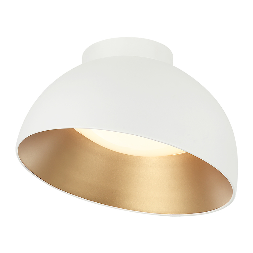 This is a lovely flush mount light! The Zenith is a sleek, modern look. The way the light is partially shielded by the outer shell creates a focused glow that would add a sophisticated touch to a space. The design makes it ideal for areas where you want both style and subtle lighting. It swivels for directional light and comes in Matte Black or Matte White with a gold interior.