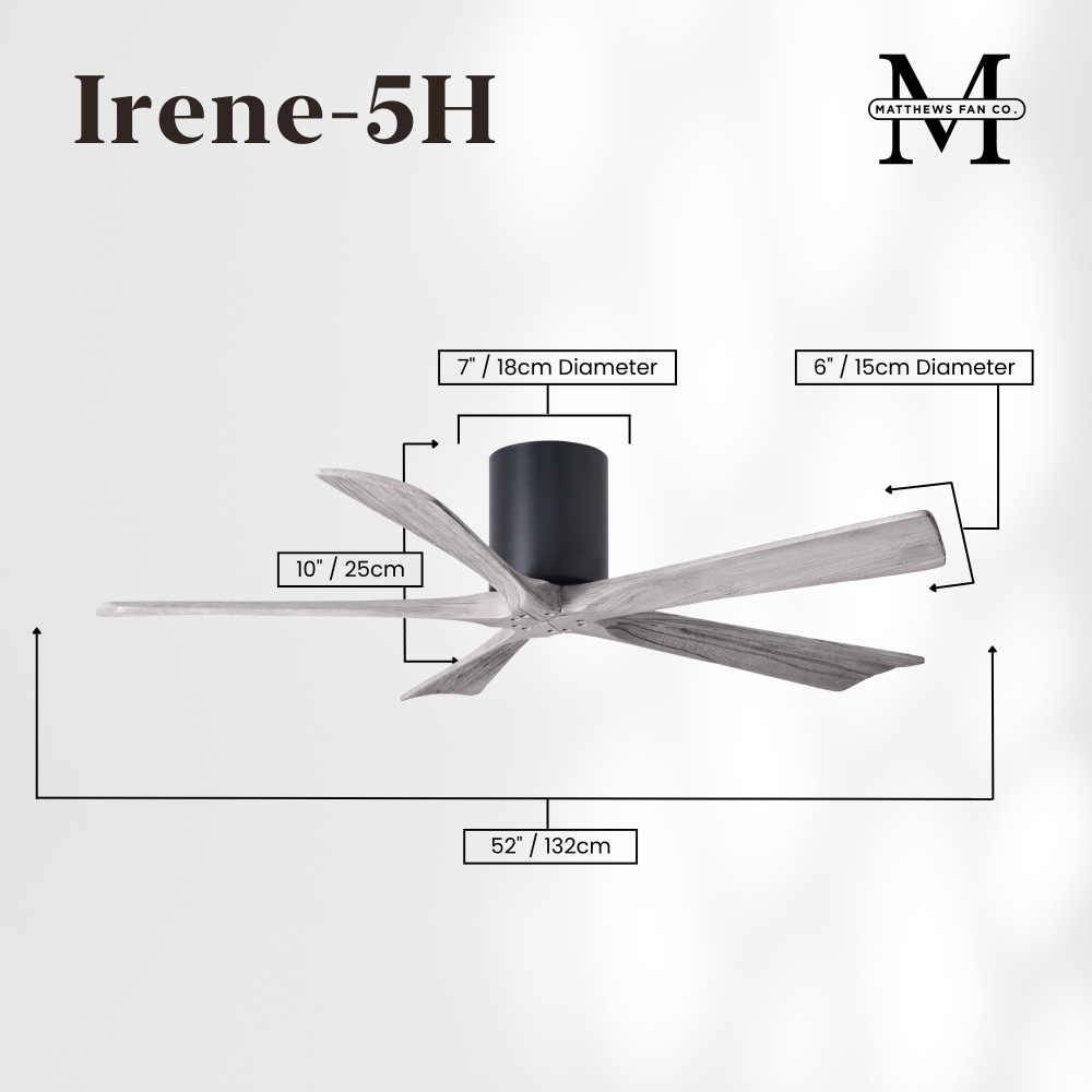 Irene-5H - 52" Five Blade Flush Mount Paddle Fan - Matte Black Finish - Barn Wood Tone Blades
