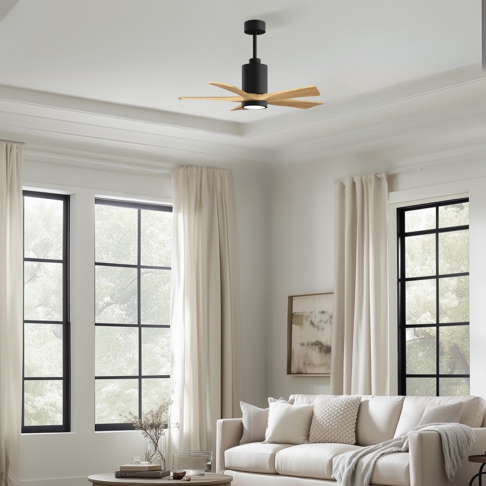 A complement to any commercial or residential space, the Patricia 5 seamlessly combines innovation with simple, refined design. Its elegant aesthetic belies its robust construction. Solid wood blades revolve around a balanced, cylindrical DC motor housing. Air is circulated efficiently with barely more than a whisper. An eco-conscious LED light kit completes the package, making Patricia 5 sophisticated, efficient and green.