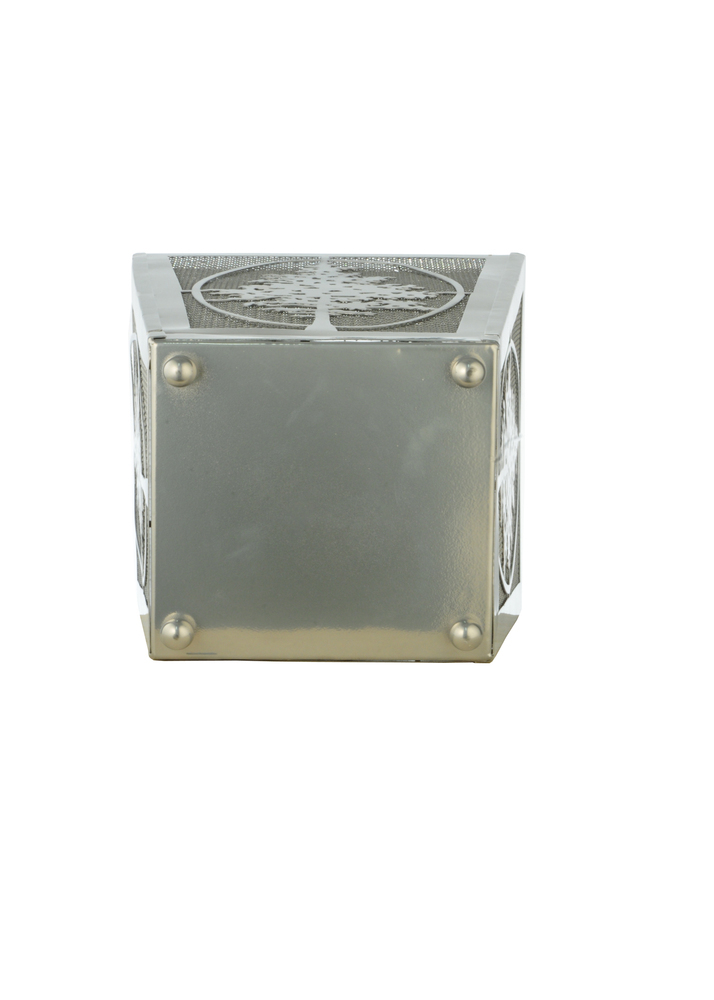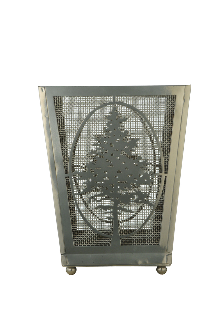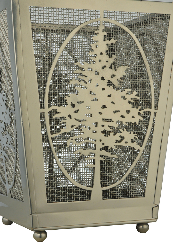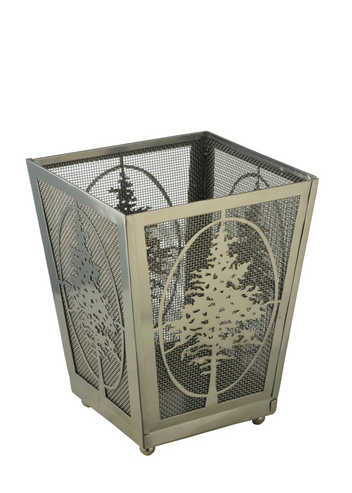 A majestic Tamarack tree is highlighted in this unique wastebasket design. The metal accents; frame; and hardware with mesh side panels are featured in an Extreme Chrome finish. Custom crafted by highly skilled artisans; this Craftsman styled home accessory stands 16.5 inches tall and is created in our manufacturing facility at the foothills of the spectacular Adirondack Mountains in Upstate NY. Custom styles; sizes; and colors are available.