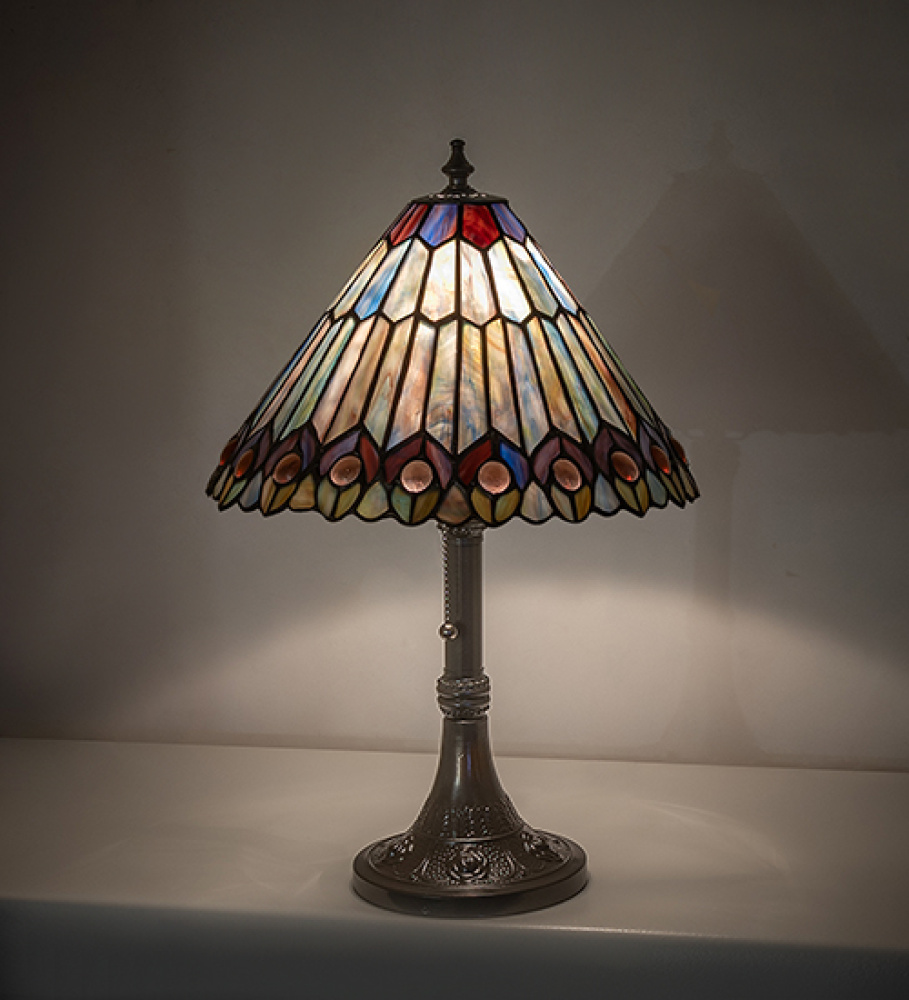 19" High Tiffany Jeweled Peacock Accent Lamp