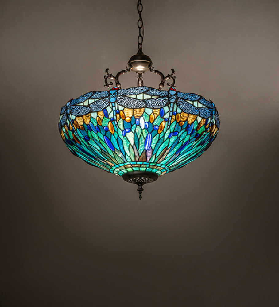 22" Wide Tiffany Hanging Head Dragonfly Inverted Pendant