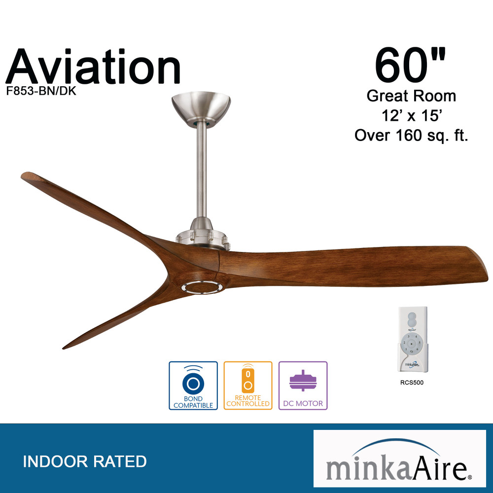 60" 3-Blade Ceiling Fan in Brushed Nickel Finish with Distressed Koa Blades