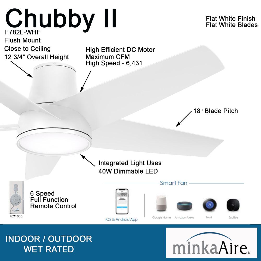 58" 5-Blade LED Smart Ceiling Fan in a Flat White Finish with Flat White Blades and Etched Lens