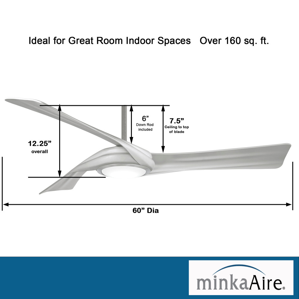 60" 3-Blade LED Ceiling Fan in a Brushed Nickel Finish with Silver Blades and Etched Lens