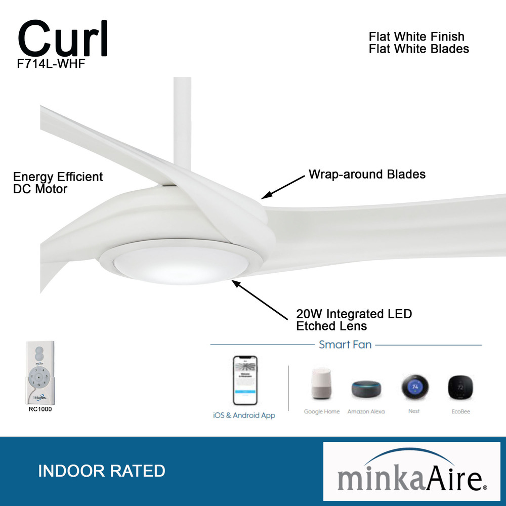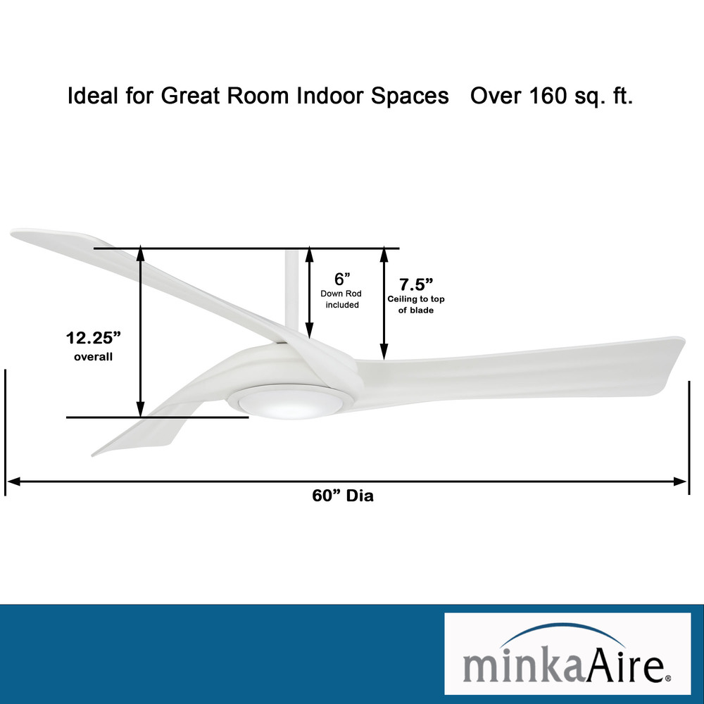 60" 3-Blade LED Ceiling Fan in a Flat White Finish with Flat White Blades and Etched Lens