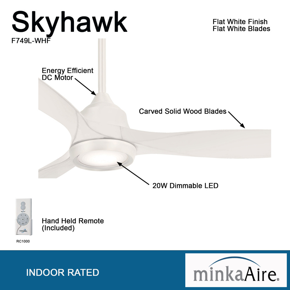 60" 3-Blade LED Ceiling Fan in a Flat White Finish with Hand Carved Wood Flat White Blades and an Etched Glass