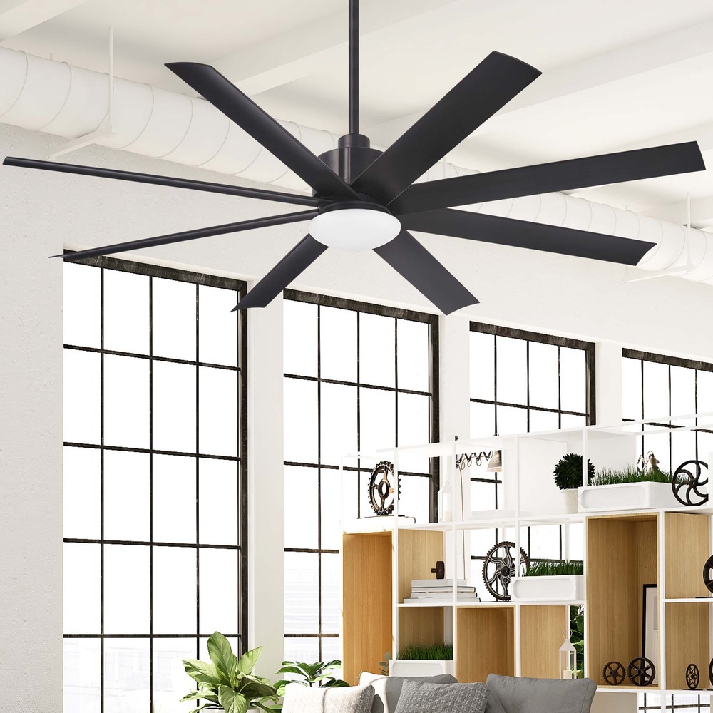 65" 8-Blade LED Ceiling Fan in a Coal Finish with Coal Blades and Etched Opal Glass