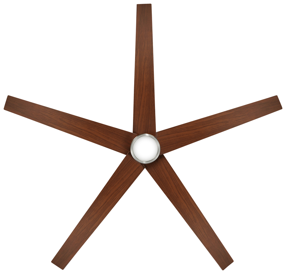 56" 5-Blade Ceiling Fan in Brushed Nickel Finish with Dark Walnut Blades with Etched Glass