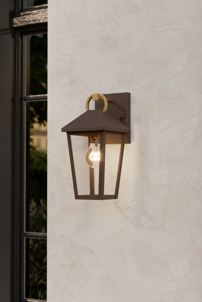 1-Light Outdoor Wall Lantern - Painted Legacy Brass and Dark Bronze with Clear Glass