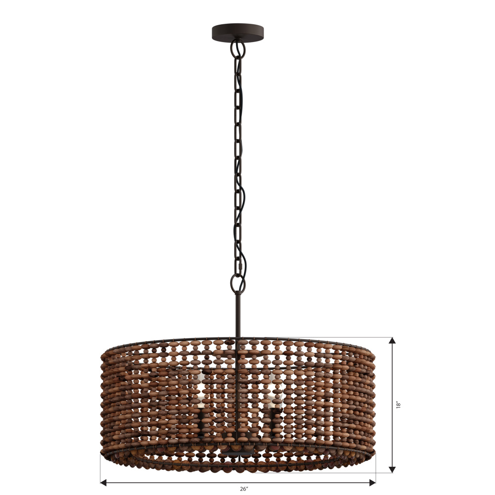 4-Light Pendant - Dark Bronze and Dark Brown Wood Beads