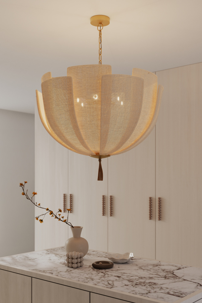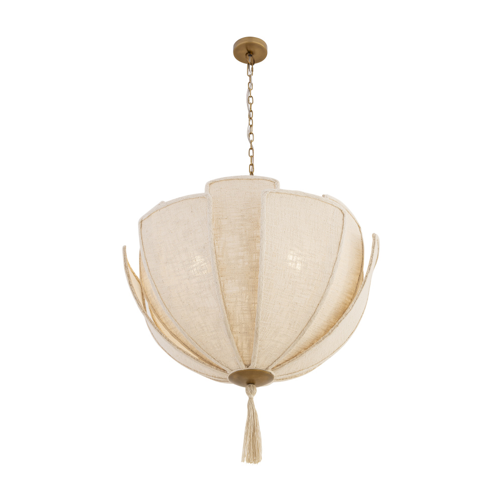 3-Light Pendant - Legacy Brass and Off White Textured Linen