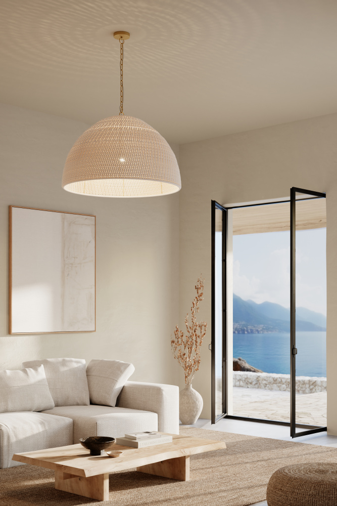 The Fernwood pendant blends transitional lines with warm, inviting illumination.