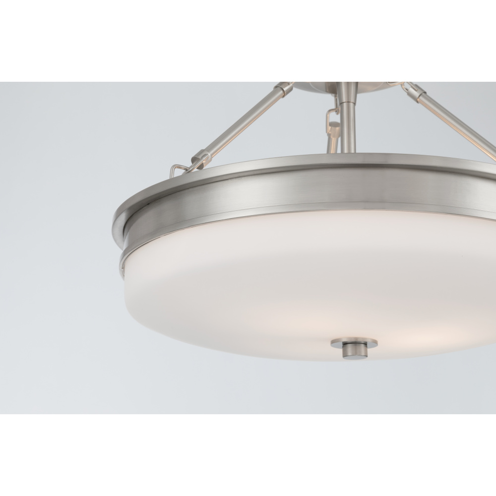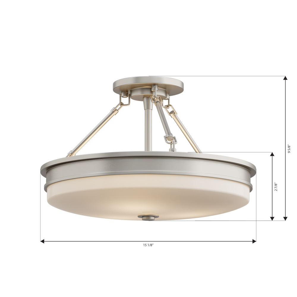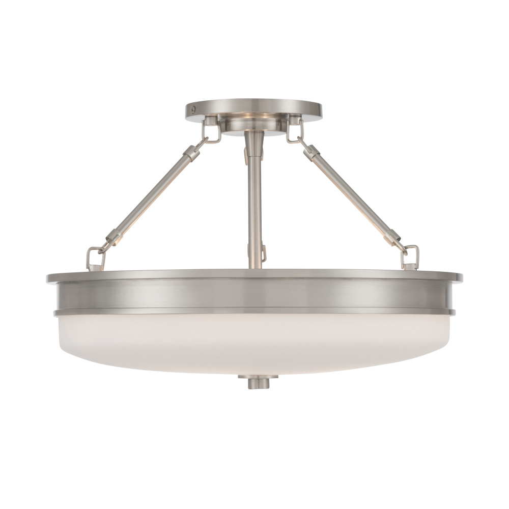3-Light Semi-Flush Mount - Brushed Nickel with Etched Opal Glass