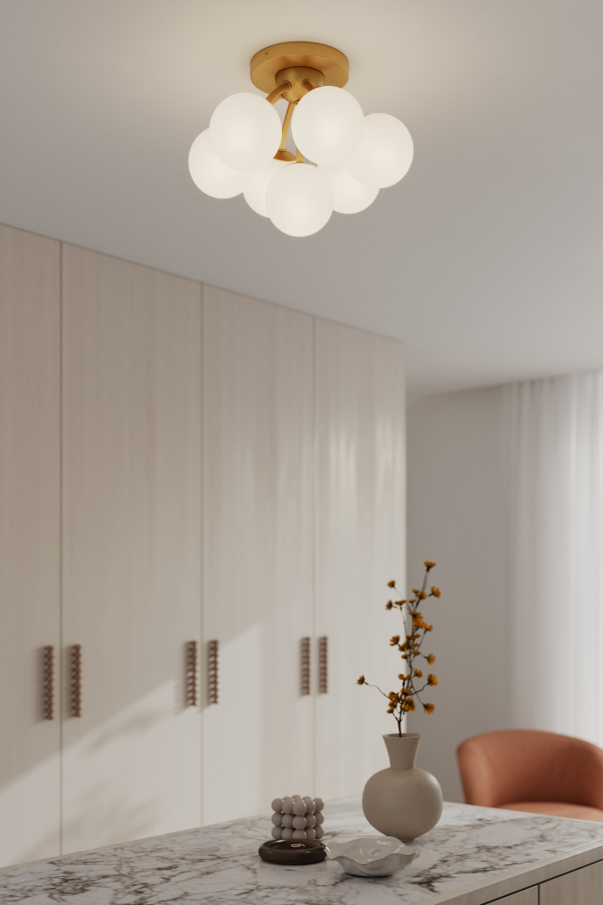 7-Light Semi-Flush Mount - Legacy Brass with Opal Glass