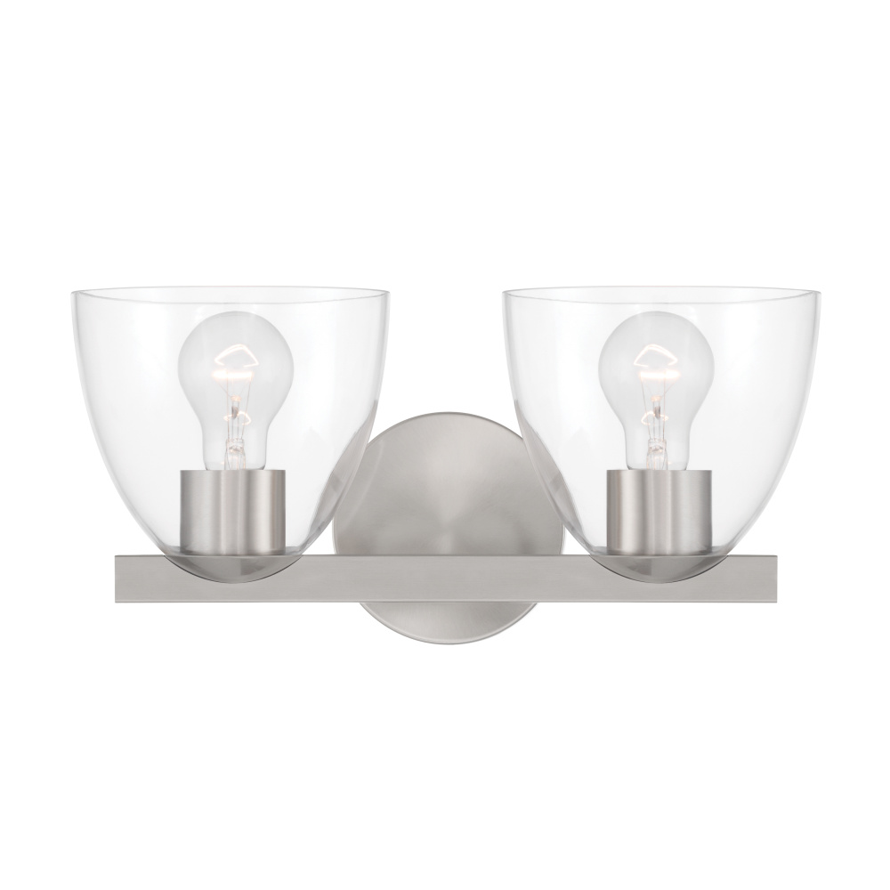 2-Light Vanity - Brushed Nickel with Clear Glass