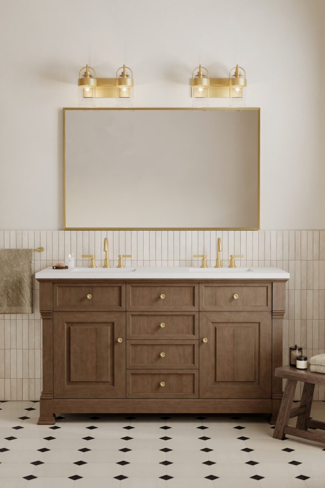 Inspired by transitional design, the Ravik bath light adds a welcoming, curated feel.